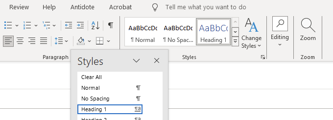 When applying styles, place your cursor in the paragraph where you want the style applied, rather than highlighting the text. Highlighting only applies the style to the selected portion. In other words, if you highlight a single word in a sentence, only that word will be formatted, not the entire paragraph.
